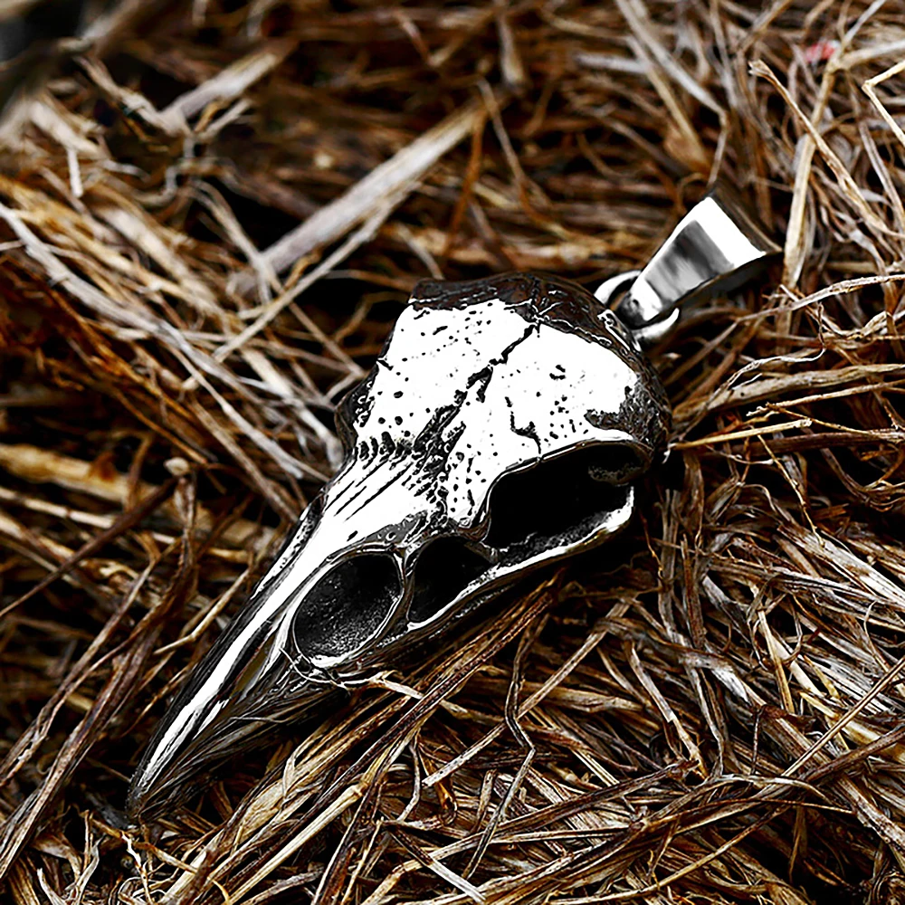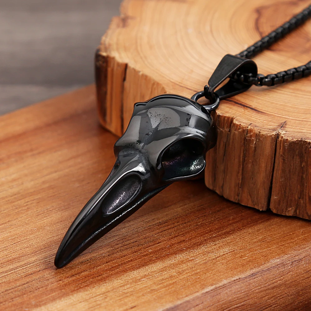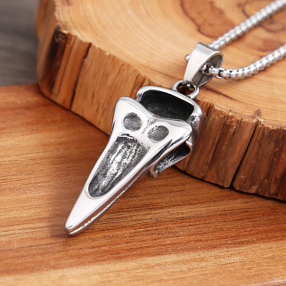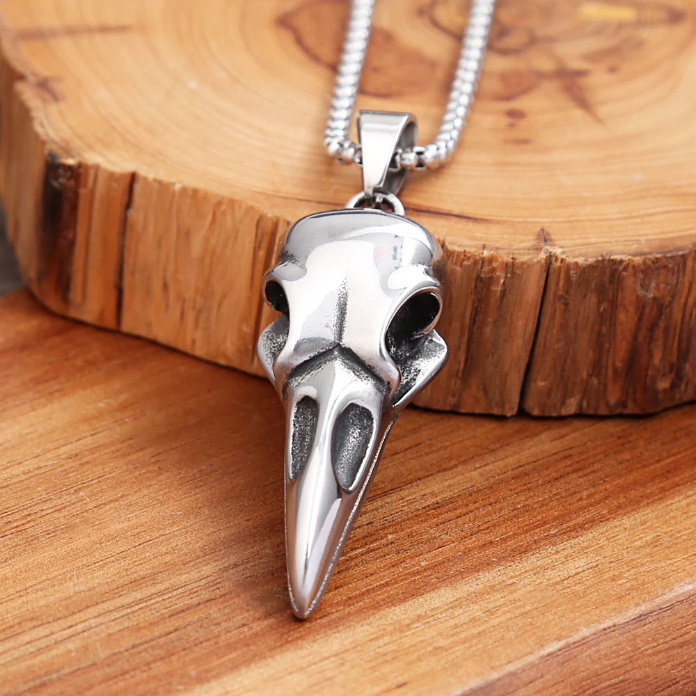 Gothic Nordic Viking Crow Skull Pendant Necklace for Men Women Punk Stainless Steel Raven Skull Necklaces Fashion Jewelry Gifts