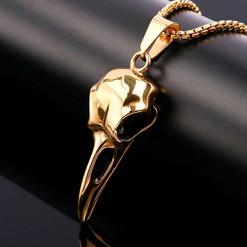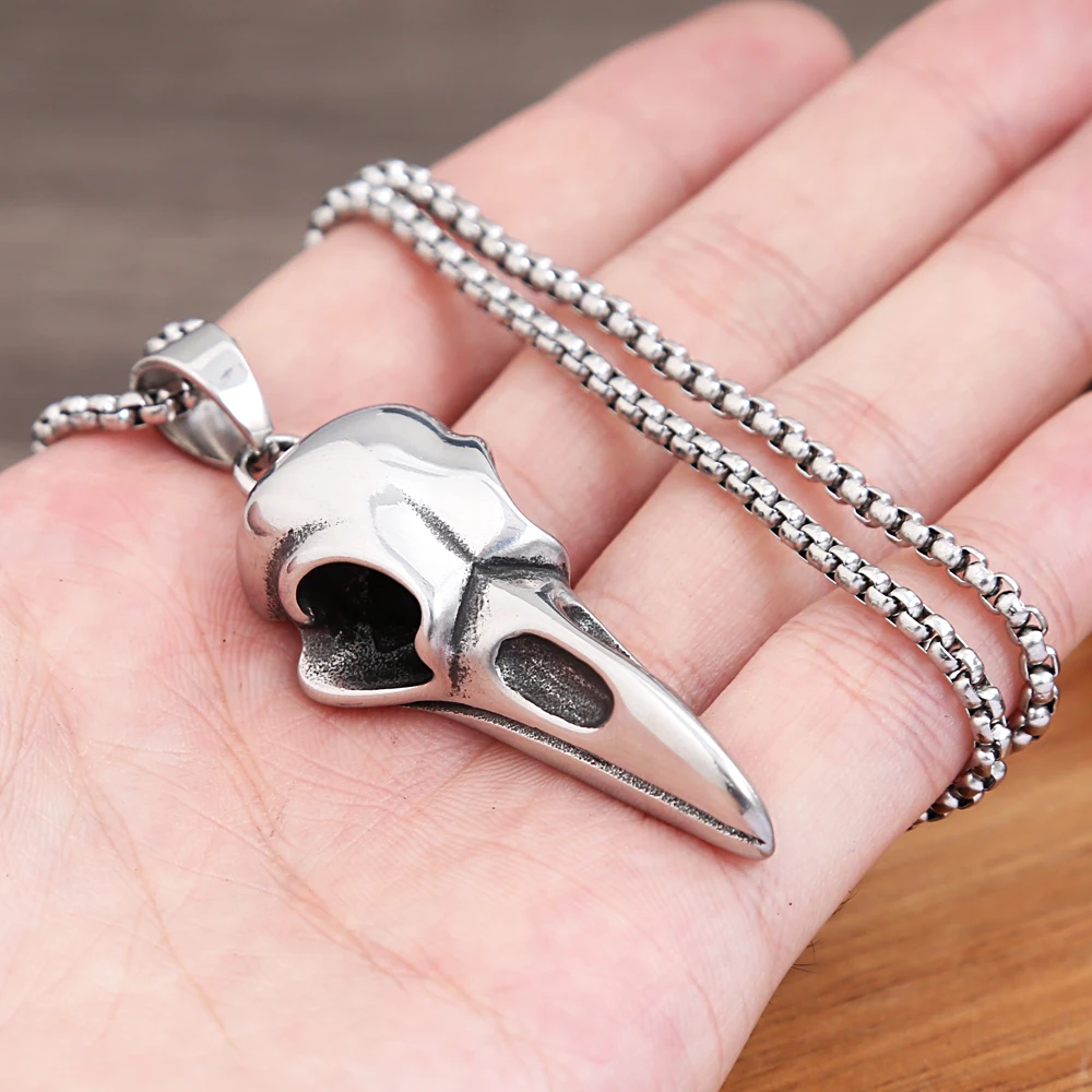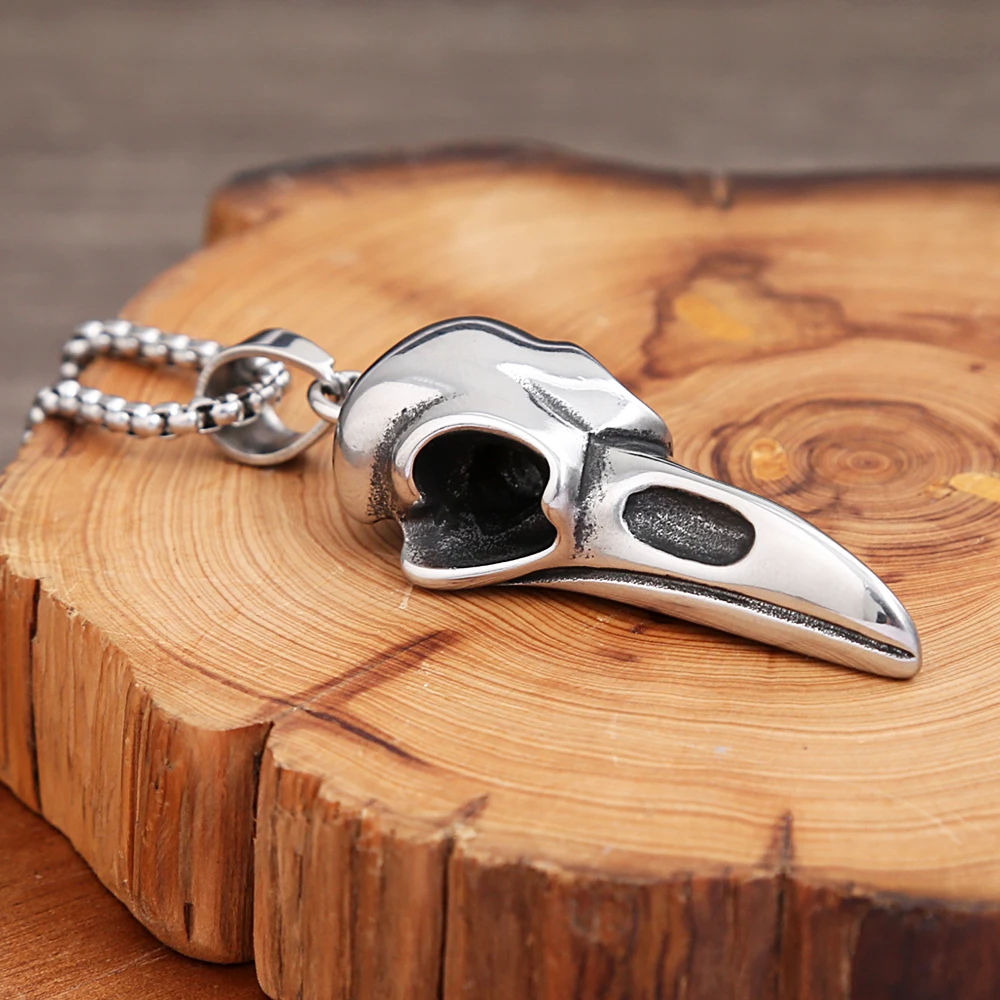Crow Skull Pendant Necklace for Men Women Punk Stainless Steel Raven Skull Necklaces Fashion Jewelry Gifts