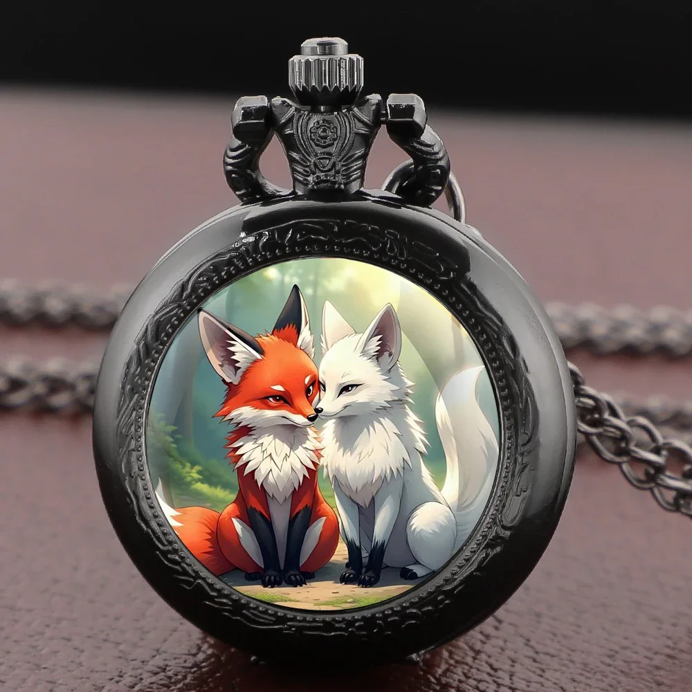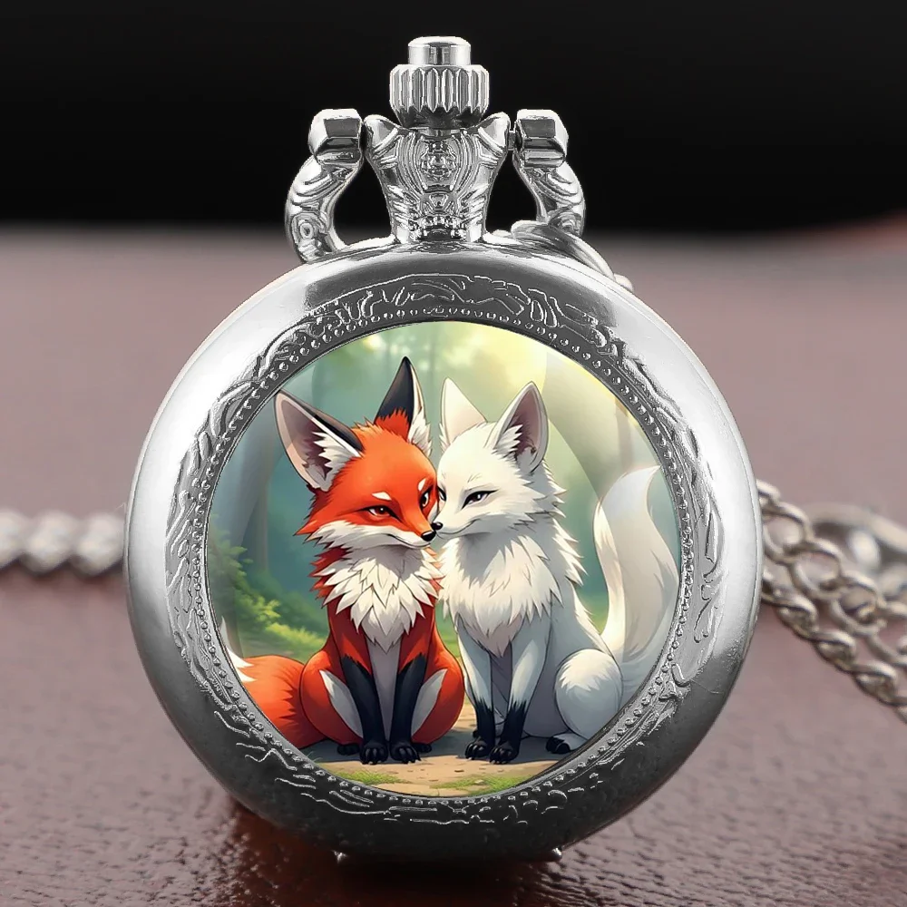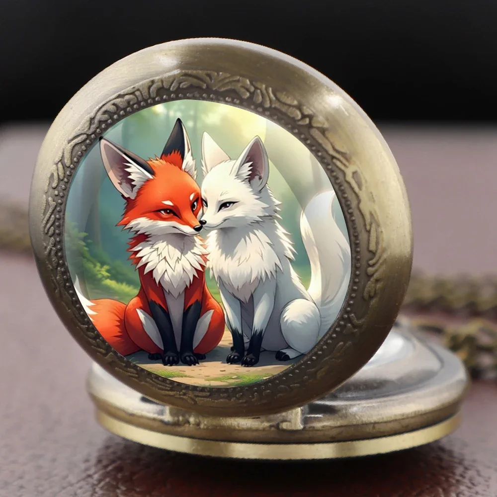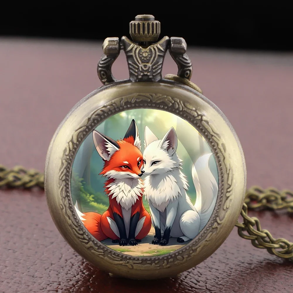 Two Foxes Vintage Dome Glass Quartz Pocket Watches with Chain Men Women's Necklace Timing Pendant Children's Gifts